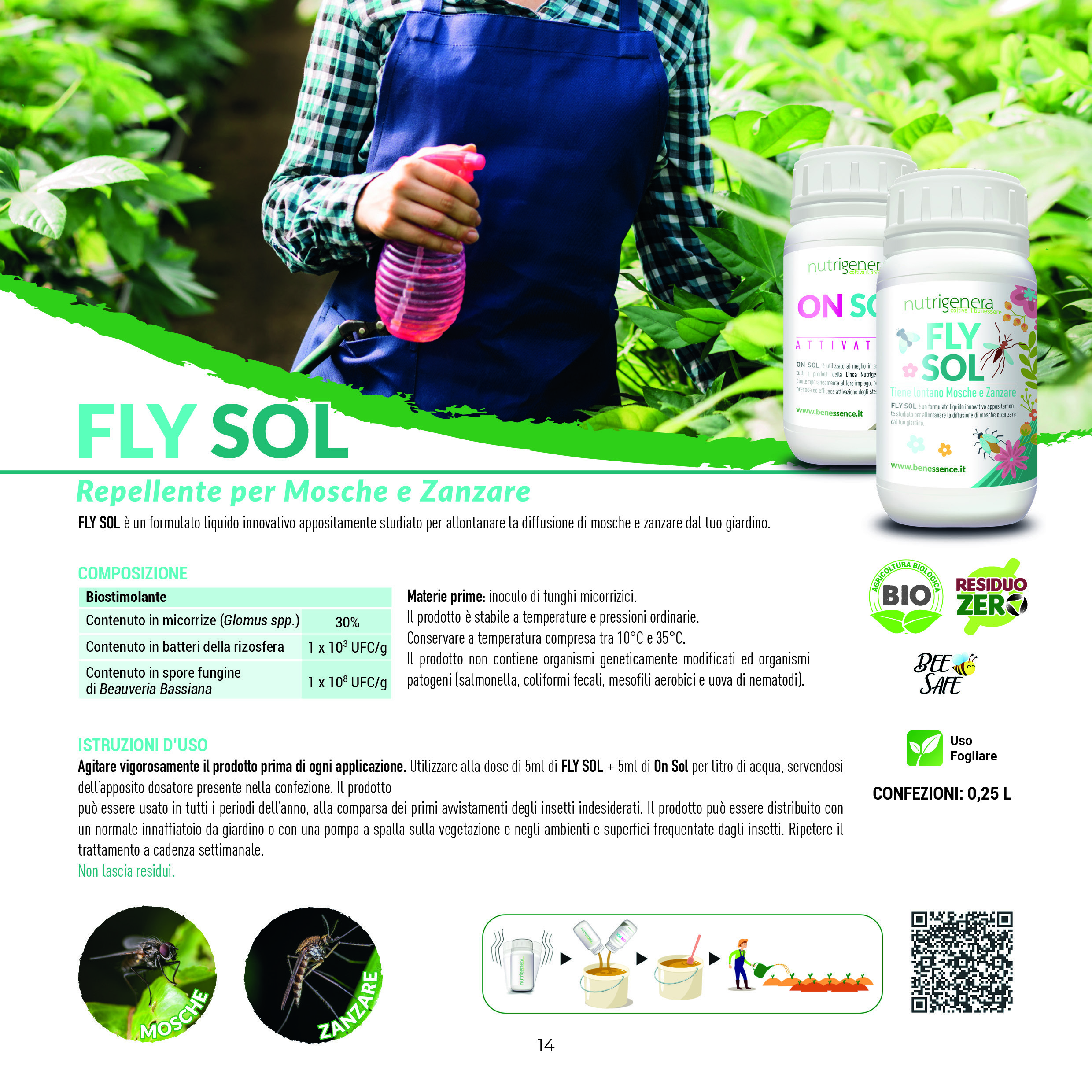 FLY SOL es un producto BIOESTIMULANTE que contiene rizobacterias, micorrizas y Beauveria Bassiana para uso foliar.